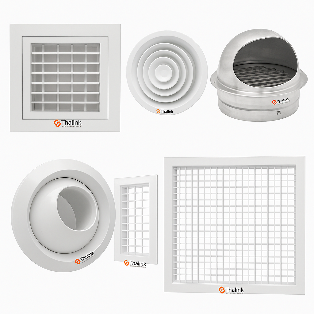 Nắm bắt được điều đó Công Ty THALINK chúng tôi đã đưa ra một số sản phẩm ống gió, miệng gió, …..các phụ kiện cho nghành điện lạnh giúp cho các chủ doanh nghiệp giải tỏa được nỗi lo âu của mình và các công nhân cũng có điều kiện làm việc tốt hơn, tăng hiệu suất làm việc. Chúng tôi đã thử nghiêm trên một số doanh nghiệp và thấy hiệu quả thay đổi rõ rệt. Sau đây chúng tôi xin giới thiệu một số sản phẩm cho quý doanh nghiệp thâm khảo.